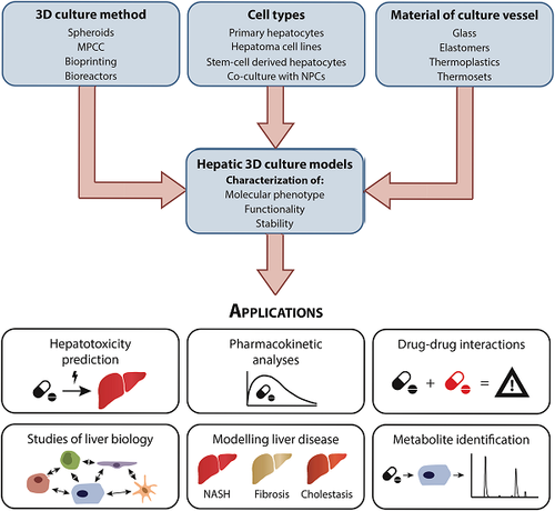 The rapid development of 3D culture systems for liver cells has had an equal effect on the production of translatable models for mimicking drug response, and toxicity along with physiologically relevant liver models for studying pathophysiology of liver diseases. This correlative effect has in turn led to increased predictability in primary human cultures for analyzing chronic effects of drug toxicity, and metabolism of low clearance drugs. Furthermore, these innovative culture platforms also enable drug screens for treatment of liver disease such as non-alcoholic fatty liver disease (NAFLD), hepatitis and liver cancer. As an added benefit, majority of these cultures can be adapted to high throughout or high content research systems. However standardization of these systems to ensure representative hepatic phenotype as well, in-vivo like functional properties still needs careful optimization. With ongoing research into novel 3D culture platforms, hepatic 3D systems will continue to grow in its value in future drug development, as well as understanding the mechanisms of liver disease and potential treatments (3,4).