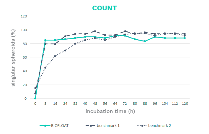 Shorten your experimental timelines. Single spheroids form faster on BIOFLOAT™ surfaces than on most other low attachment or cell-repellent surfaces.
