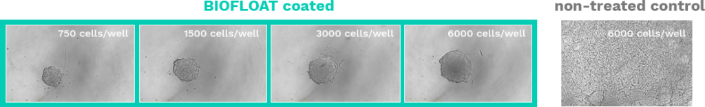 The reliable quality of the BIOFLOAT™ surface makes it a premium product for spheroid and organoid culture, including cells which fail to generate spheroids on existing products.